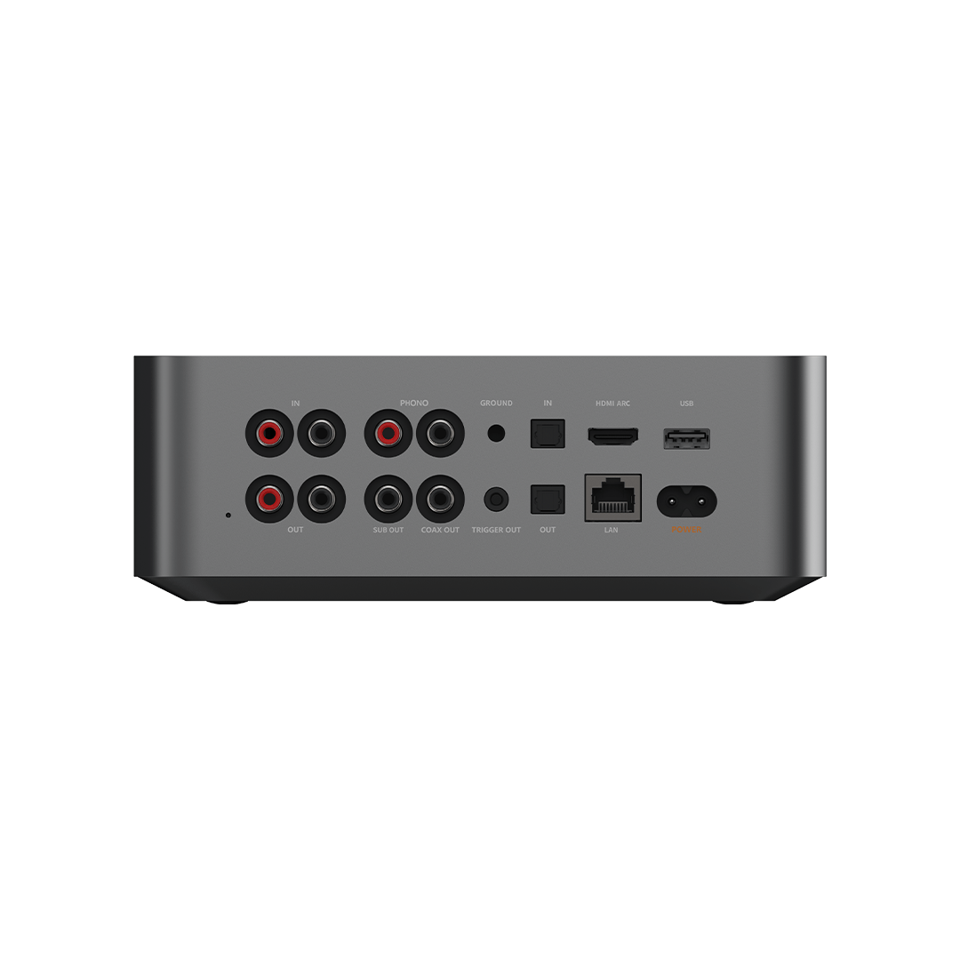 Wiim Ultra’s comprehensive connectivity suite offers USB, Optical, Coaxial, RCA outputs, and HDMI ARC, plus multiple inputs including RCA, Phono, and Optical. The Ultra is designed to flawlessly integrate with both digital and analohue systems, enhancing any audio set up with versatility and superior sound.